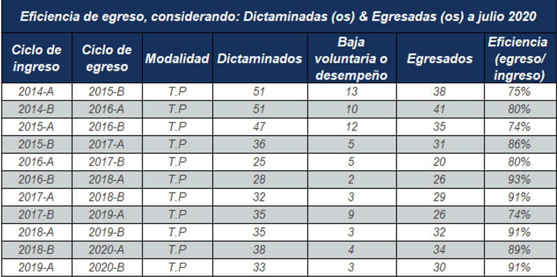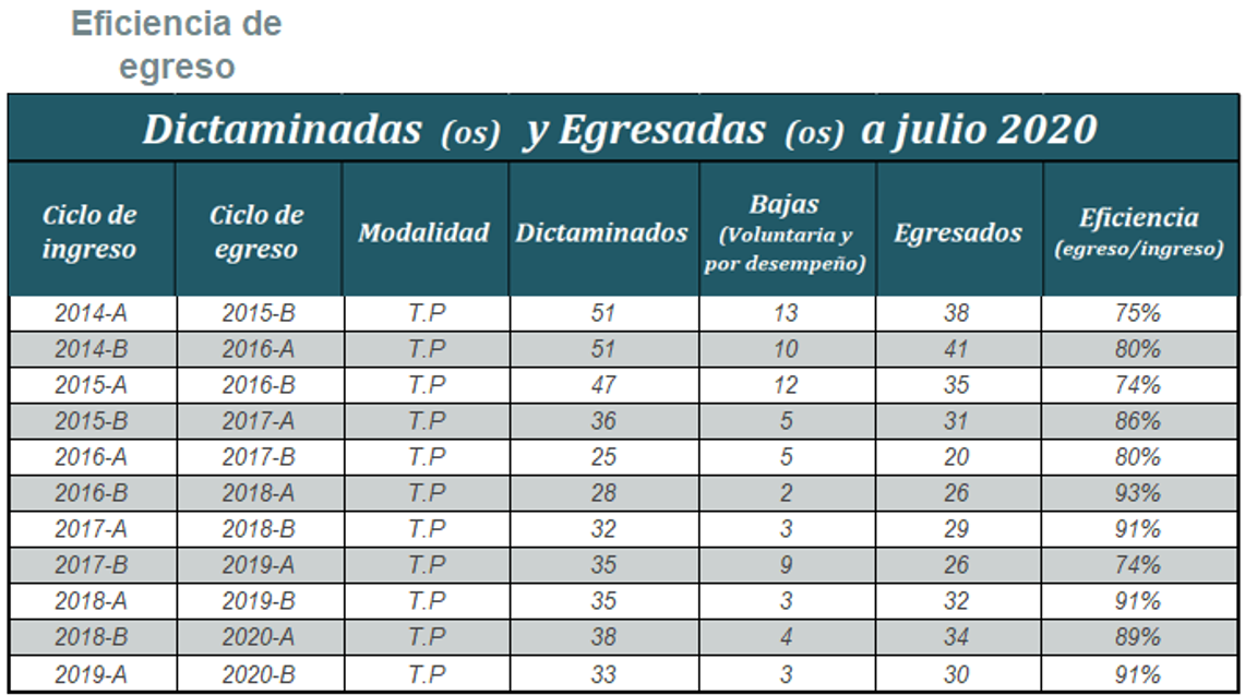 Estadísticas de egresadas y egresados con respecto a deserción y trabajos recepciónales